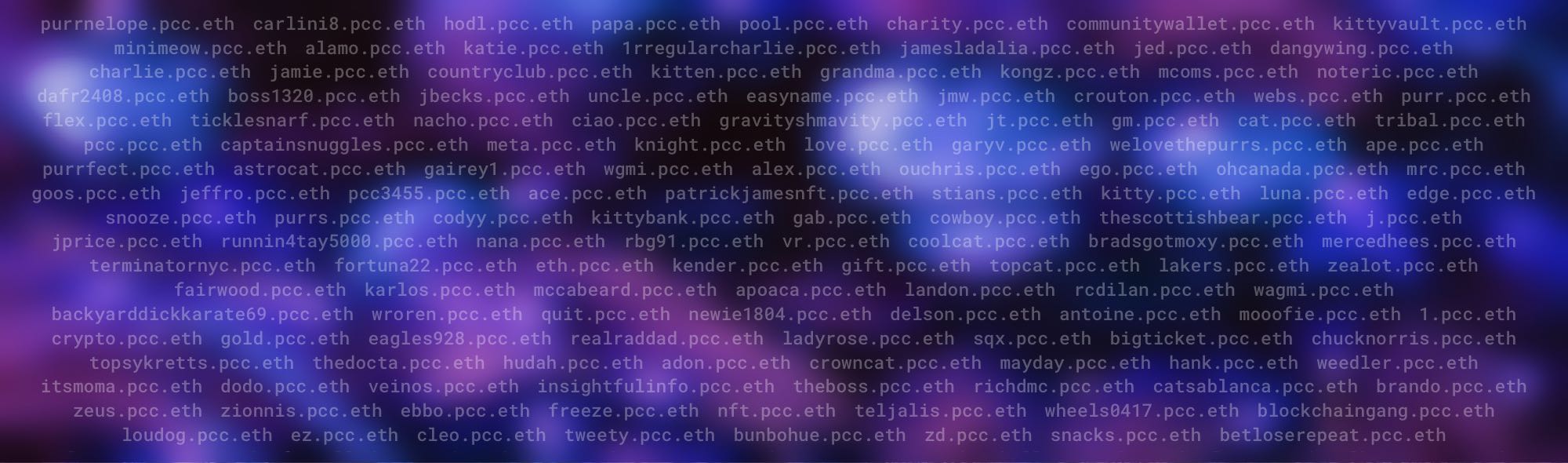 .pcc.eth subdomains are free for PCC Cat holders to claim.